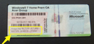 windows7の場合 windows7のライセンスシールが有る場合